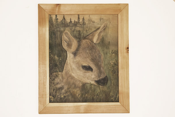 Beistelltisch Kanadischer Ahorn massiv mit einglegtem Glas, Gestell echte Hirschgeweihe